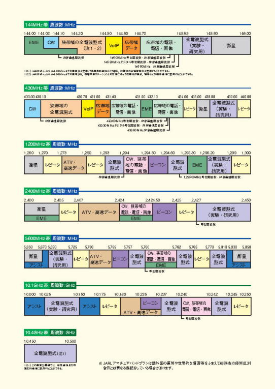 下図に示すJARL アマチュアバンドプランは2023年(令和5年)9月25日施行。