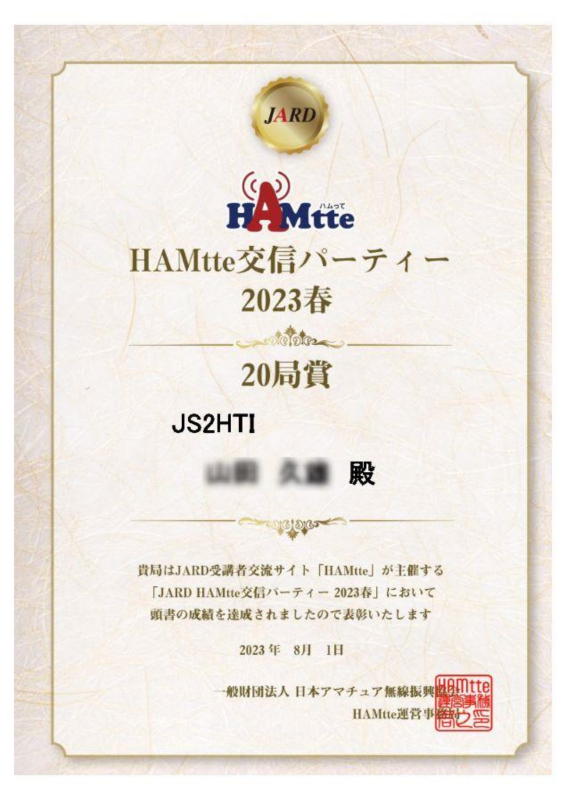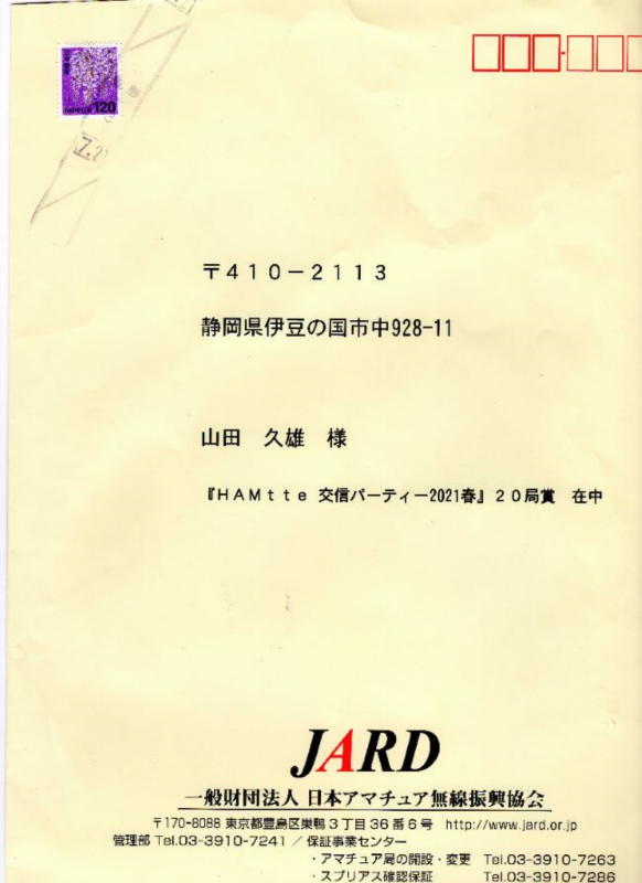 JARD HAMtte 交信パーティーに参加して頂いた物です。