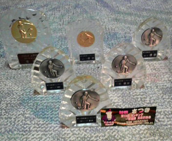 左から 上野杯A2005.6優勝 第5回新橋ランキング優勝第6回新橋ランキング優勝 第7回新橋ランキング優勝 第9回新橋ランキング優勝 第10回新橋ランキング優勝 第13回新橋ランキング優勝 記念品引換券(引換えてきてね) ブラウザの[←]で戻る