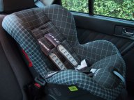 | チャイルドシートについて、(1)にはベビーシートについて書きましたが、その次のステップのチャイルドシートとして、レーマー社製のロードを選びました。 こどもが思ったよりはやくイーブンフロー・ファーストチョイスの限界を超えてしまったため、ファーストチョイスは使えなくなってしまう一方、まだ前向きは時期尚早かと思い、はじめは前向き専用ではなく前後向き兼用のものにしようと思っていました。 そこで、信頼性や価格、まだ発展途上で日進月歩の感がある分野なのでより新しい製品がよさそう、ということで国産のタカタ製ミリブ3500が良いかと思い近所のアカチャンホンポに行きました。そこでミリブ3500を155で使いたいことを言うと、担当氏は「欧州車にはフィットしない場合が多い」…ということで試着をしてみたところまったく安定しませんでした。この時点で購入を諦めました。 …が、プロが付けて安定せず、売り手が売りたがらないのだから間違いはないのでしょうが、その後チャイルドシートの固定の仕組みを理解した今となっては実は「何故だめだったのか?」が今一つ釈然としません。もう一度ミリブ3500を今度は自分の手で付けてみたいとなぁと思います。何もわからなかったミリブ試着の時と比べ今なら、多少なりとも自分で要所要所をチェックできると思うので。 ですので、ミリブ3500が155には使えないはっきりした点が明らかになっているわけではありません。今は、「ひょっとしたらしっかり装着できるんじゃないか?」とも思います。ただ155の座面とミリブ3500の底面がフィットしていないことはあるかも…。(これが大きな問題かどうかはわかりません) 下のロード装着のところにも書いていますが、3点固定のチャイルドシートに関しては、「車のシートベルトのバックルとチャイルドシートのベルトガイドの位置関係」が非常に重要なようですね。何も知らなかったミリブ3500試着のときは、ただ単に「とりつけた結果ぐらぐらしてるみたい…」ということだけで、こういう点に関して何も確認できなかったことを後悔…。 さて、ミリブ3500は付かないと言われてしまったためチャイルドシート選びはふりだしにもどってしまったわけですが、ネット上で相談を投げかけたところ「レーマーを推奨する」というご意見をいただきました。早速ラインナップを調べてみると、「専用」に拘ったラインナップにぐらっときました。「ベビー兼チャイルド」でもなく「チャイルド兼ジュニア」でもない純粋なチャイルドシート(狭義)専用設計に共感を覚え「これだ!」と思いさらに調べてみると各方面で評価の高いキングの後継となるであろうロードという製品が出たばかであるということもわかり「最新のチャイルドシートは最良のチャイルドシート…だろう、きっと」と思っている自分にはこれしかない!と思うようになりました。ひとつの気になる点を除いて。 現物を確認しようとヤナセに行ってみましたが、ロードの現物は無く「取り寄せておくので、来たら試着してみてください」ということになり、製品が届いた一週間後、再度訪問し試着したところ装着に問題なさそうだったので購入しました。 では、レーマーロードを155の装着した場合についてです。装着するとこのようになります。 ![]() ただしこの写真はベビーシートからの移行で本人に違和感が無かろうと思ったリクライニングを一番倒した状態です。日本で正規に買える色はこのグレー系で、チャイルドシートとしては地味なものです。こどもはあまり喜ばないかもしれませんが色は155の内装には絶妙にマッチしてます(まるで純正であるかのように…) まあそんなことはいいとして、まずいろいろ情報をいただいたりした中でこの手の3点固定チャイルドシートでもっともクルマとの相性を考慮するする必要がある部分は、「車側のシートベルトバックル(キャッチャー)」と「チャイルドシート側のシートベルトガイド(レール)」にあるようです。チャイルドシート側のシートベルトガイドに車のベルトのバックルやキャッチャーがかからないような関係にないといけないようです。これはロードのマニュアルにも記載されており、ここにはバックルがかかる場合は毛布当で底敷をしてチャイルドシートの嵩上げを行う必要があるとのことでした。 これはキャッチャー側が長い場合に問題になるようです。いままで車から生える(?)ベルトキャッチャーの長さなど意識して見たことがないので155のそれが長い方なのか短い方なのかわかりませんが、実際次の画像の通りです。 ![]() 実はかなり際どい感じです。ただしチャイルドシート側のガイドにはキャッチャーは当たらずまた見にくいですがバックルも当たっていません。「ガイドを押さえているのはベルト」という状態に辛うじてなってます。また、この写真の状態はリクライニングを倒した状態ですのでこれを起こすとガイドは更に高い位置にくることになり良い方向に向かう