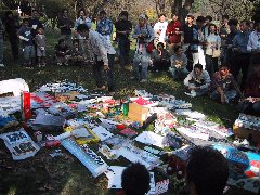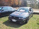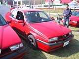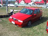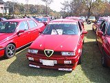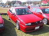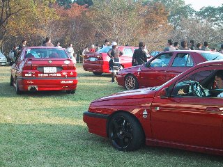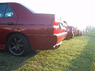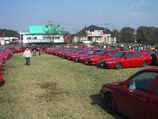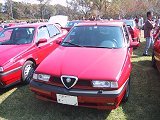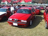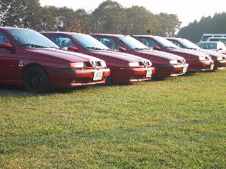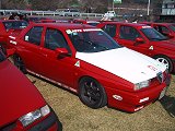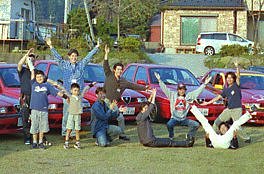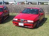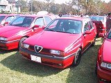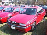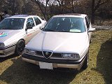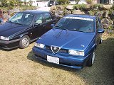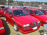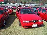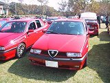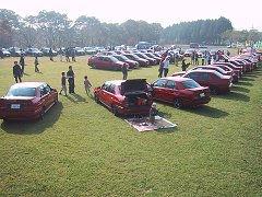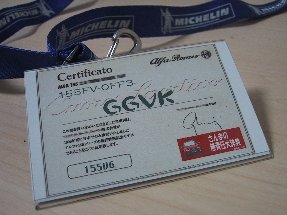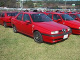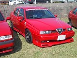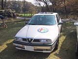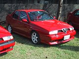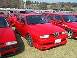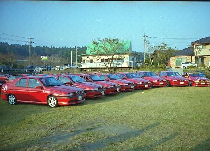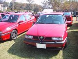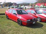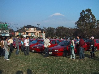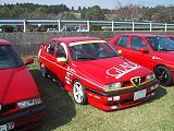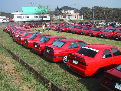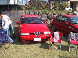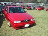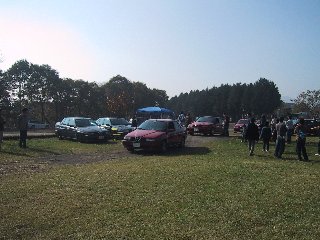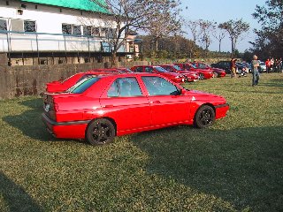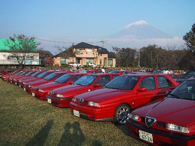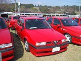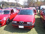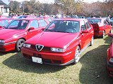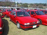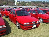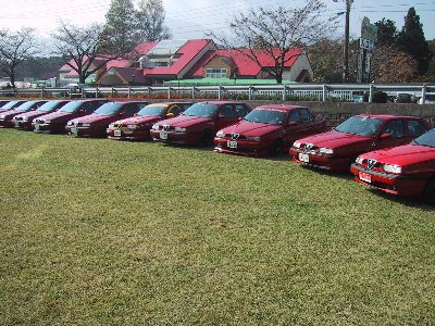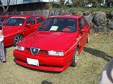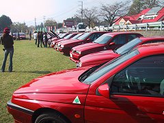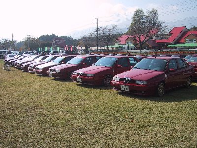 言わずと知れた編集長さんまさんのサイト「さんまの無責任大辞典」主催の155FV3オフに参加してまいりました。![]() 2003年11月1〜2日にかけて開催されましたが、2日目の11/2の一日参加です。開催地は、静岡県の朝霧高原にある「まかいの牧場」という施設で、東名冨士ICからアクセスすることにしました。当日は朝6時半に自宅の横浜を出発する…予定でしたが結局家を出たのは7時過ぎでした。(今回は家族で参加しましたので、こどもがいるとなかなか時間が予定通りに運びません^^;) 7時過ぎになってしまったことから渋滞が懸念されましたが、第一関門の保土ヶ谷BPは難無く突破、東名は東名町田ICから既に混んでいましたが、まだ3km程度と大したことはなく海老名SAを通過するころには順調に流れはじめほっと胸をなでおろしました。 と、思う間もなく海老名SAから某関西方面の方々の155が本線上に快音とともに踊り出してきました。70台以上の155が集まるイベントとはいえ、百や千の単位で参加車輛が集まるFBMやARデイのように既に行きしなの高速から邂逅があるとは思ってもみませんでしたので、思いがけなさも手伝って早くも気持ちは昂揚してきました。 しばらく一緒に走っていましたが、私は子供も乗せていることもあり、完全に流れ始めた地点あたりから第一車線に戻りましたが、このとき一瞬東名の3車線を155が埋め尽くす(やや誇張^^;)状態になり、DTMかITCのオンボードカメラからの映像か!?と想像が膨らむ光景が広がりました…一瞬でしたけど。 完全に流れた大井松田付近で私はファミリーカー運転に徹したため編隊からは離脱し、一瞬ご一緒できた皆さんは快音を残し県境越えに挑んでいきました。 その後も順調に東名を下り冨士ICよりR139号に出て一路目的地を目指します。富士宮付近よりやや渋滞気味になりましたが、10時の集合時間には大分余裕を持って「まかいの牧場」に到着することができました。東名方面からだと右折で会場駐車場に入ることになりますが、駐車場入り口にはわかり易いよう155が置かれスタッフの方の誘導で迷うことなく入ることができました。 車は色別に停めていくという配慮のもと赤組の方へ誘導され所定位置に駐車しました。「色別に停めたい!」という参加者の共通認識をくみ取っていただけるこういう同じ価値観の方々が集まるイベントならではの配慮は素晴らしいです。どの順番で来るかもわからない車を的確に誘導されるのも大変なことでしょう。 ![]() 朝日を浴びながら次々と会場入りする155。当たり前ですが来る車、来る車、全てが155!そして次々に芝の駐車場に整然と並んでいきます。 ![]() ![]() ![]() ![]() 10時も近づきだんだん数も増えてくると、いままで見たこともない光景が現実のものとして目の前に広がっていきます。70台超の155が一同に会する…それも155だけが!晴天の空の下、まだかろうじて緑の絨毯の様相を残す秋の芝を埋め尽くしていく155…凄い!凄いの一言です。 何はともあれ受け付けを、ということで、i-PANDAさんの下へ。「はじめまして。55(そうです。受付番号は栄光の(1)55番だったんです^^;)のGGVKです。」と、やや緊張しながら名前を告げると一緒に受付にいらっしゃったさんまさんからも「はじめまして」とご挨拶いただきました。思えば最初にメールをいただいてから2年以上、以来メールやBBSでは何度となくお話(?)していましたが直接お会いするのは始めて!嬉しかったですね〜。なんたって2年以上も引っ張ってきましたから^^;。 さていよいよ10時の開会宣言(?)とともに正式に始まったFV3の2日目。日程案内や注意事項など説明していただき、11時半の昼食までは自由行動^^;。とりあえず参加車輛を写真に収めていくことにしました。撮ってる間にも久しぶりにお会いする方にも「どうも、ご無沙汰です!」などとやってるうちに「あれ?どこまで撮ったけ?」と間抜けなことになっていたため撮った画像を持ちかえってチェックしたところ73台中69台分しかありませんでした。4台のオーナーの方すみません。人気車種で皆さんが集まっていたため「あとで撮ろう」と思ってそのまま機会を逸してしまったお車もありました。下の69台は多分ダブってないと思いますが…如何せん数が多いので! 当日集まった73台のうち69台の155の勇姿です。 ![]() ![]() ![]() ![]() ![]() ![]() ![]() ![]() ![]() ![]() ![]() ![]() ![]() ![]() ![]() ![]() ![]() ![]() ![]() ![]() ![]() ![]() ![]() ![]() ![]() ![]() ![]() ![]() ![]() ![]() ![]() ![]() ![]() ![]() ![]() ![]() ![]() ![]() ![]() ![]() ![]() ![]() ![]() ![]() ![]() ![]() ![]() ![]() ![]() ![]() ![]() ![]() ![]() ![]() ![]() ![]() ![]() ![]() ![]() ![]() ![]() ![]() ![]() ![]() ![]() ![]() ![]() ![]() 掲載に問題がありましたらお知らせください。 とにかく70台以上という数に圧倒されているうちにあっというまに11時半のお食事タイム。バーベキューというか正確にはジンギスカンで、ちゃんと席も用意され十分お腹いっぱい食べられました。この「ちゃんとしたお昼」の用意には妻も感心し、ありがたがっていました。という