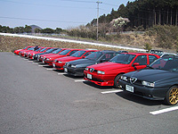| 155V6LVにお乗りのYasさんが2004年5月をもってお仕事の都合で関東圏から関西圏へ移られることになり、にしやんさん主催で4月3日に「Yasさんまたね!」オフが宮が瀬で開催されました。 Yasさんには本サイトを通してまたHex1・2でもたいへんお世話になっておりますのでこれは是非参加させていただかなければということで行ってまいりました。 家を出る直前に急遽家族参加に変更したことと保土ヶ谷BPの渋滞で旧R16→厚木街道というルートに変更したこととで、案の定集合の10時に対し10時半過ぎに到着と大幅に遅刻してしまいました。すみませんでしたm(_ _)m。 現地に到着すると、既にズラ〜っと駐車場の一列を埋め尽くした155。いつ見ても壮観。ステキな光景ですね。 ![]() ![]() 全部で14台(+1代(?))。あっという間にこれだけの台数が集まるなんて人徳ですね 皆さんすでにご歓談中…当たり前か^^;。相変わらずひっこみ思案な私はちょっと、とまどっちゃいました。でも皆さんに声を掛けていだだきホッと一安心。とりあえず、主賓のYasさん、幹事のにしやんさんにご挨拶して、みなさんのお仲間入り。まぁ私のことはどうでもいいんですが、年末の事故経過を心配してくださった方々もいらっしゃいましたのでクルマ復活のご報告。皆さん、HPをご覧下さっているようで、穴空きフロントメンバーをご確認いただきました^^;。 …んなことは、どうでもいいとして、Yasさんを中心に155談義に華をさかせ、またYasさんご自身でご自身のLVの走行模様の撮影会(?)(driven by よしさん…だったかな?違ったらごめんなさい)などなど…春のうららかな日を155三昧で過ごせました。 松永さんチョイスで幹事さんにも当日まで内緒のプレゼントと当日集まったみなさんによる寄書きのYasさんへの贈呈や記念撮影など和気あいあいとした雰囲気のなかとりおこなわれ、155仲間っていいなぁと実感しました。 Yasさんから「こんな仲間ができるなんて155って凄い力をもったクルマです。皆さん大事に乗り続けましょうね!」というメッセージで中締めとなりました。 その後、時間のある参加者で昼食をとり、またゆっくり155やアルファの話題(や世間話^^;)で盛り上がりました。156や147はすごく元気で台数もかなり増えてきているのに対し155って少なくなってきたとか、最近ここが悪いとか、あそこがそろそろとか…お年寄りの病院での会話みたい…なんてことは決してないです^^;。まだまだ全然平気でしょう! ![]() 主賓車(の隣に何気に移動…列の間が空くのも何かと思ったんで^^;) ![]() 上の集合写真と若干オーダーが変わってます 駐車場に集まった155は一般の観光客の目にも触れちょっとした注目を集めてました。こどもから年配の方まで、物珍しげに(^^;)見てました。中には「どこのクルマなの?」と尋ねてきたご婦人もいて「イタリアのクルマですか。かっこいいわね。」と感想をもらされてました。やっぱりインパクトあるカタチなんでしょうね、155って。 午後2時過ぎごろYasさん、にしやんさん、まだ残っている方々にご挨拶をして帰路につきました。 今回こうして再び155のオフに参加できて、つくづく直して良かったぁと思いました。好きなときに好きな人達が集まり、また次の機会には再会もできる…。決してクラブとか型にはまったものではないのにこういうことを実現させてる155ってYasさんのメッセージにもあったようホント凄いクルマですね。 今回もFV3のときと同様家族で参加させていただきましたが、同じ世代のオーナーが多く4ドアセダンということもあり同じようにご家族で参加されている方々もいらっしゃいました。ウチのこどもも、”おにいちゃん”と仲良しになって遊んでいました。咆哮を奏でる排気系を誇るクルマが集まるオフに同時に家族連れもごく普通に参加できる…155の懐の深さをまた実感しました。 Yasさん、にしやんさん、松永さん、参加者のみなさん、楽しい一日をありがとうございました。155に乗り続けていて本当によかった!関西へ移られてからもYasさんの益々のご活躍をお祈りいたします。 |