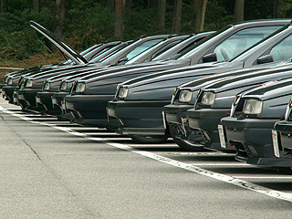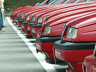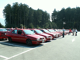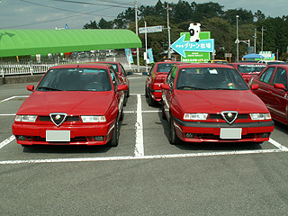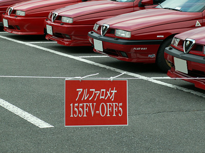編集長さんまさんのサイト「さんまの無責任大辞典」主催の155FV5オフに参加してまいりました。![]() 2005年10月1〜2日にかけて開催されましたが、2日目の10/2の一日参加です。今回は群馬県の伊香保グリーン牧場での開催でした。 同じ神奈川から2日目参加のよしこう。さんと東名港北PAで待ち合わせ、2台で行くなら下道に出ない方が、はぐれにくいだろうということで、東名→首都高3・C1・5号→外環→関越経由で目的地を目指しました。途中関越で、2台ほど155に出会いました。 渋滞もなく順調に予定通り集合の10時にはかなり余裕をもって到着しましたが、既に数十台の155の姿が!2年振りの光景に圧倒されながら、これまたいつもの配慮でにきれいに色別駐車。駐車場スタッフの方々のクルマ捌きには感服します。 ![]() 受付けを済ませて、集合時間までしばし歓談。その後、正式な集合時間が過ぎたところで簡単なスケジュール説明とそれに続いて、自己紹介が始まりました。ちょっと緊張しながら私も事故紹介…じゃなくて自己紹介。この自己紹介で顔とお名前が一致するので、なかなか良い企画だと思いました。今回はクルマにも名札(?)を提示するようになりましたので、クルマ−お名前−お顔が繋がっていきます。85台分覚えるのは不可能でしたが^^;。 その後は食事まで、自由行動。今回自分に課した使命は、参加車輛を全部記録すること。FV3のときは、全部撮ったつもりが、残念なことに何台か抜けてしまっていたので、今度こそコンプリートを目指し頑張りました。今回は駐車場がより整然としており、撮影抜けが起こりにくい状況でしたが、それでもフロントフードを開けて歓談中の方などもいらっしゃったので、「ここは後ほどお邪魔…」などとしているうちにだんだん全部撮ったか不安に…。 でもプレビューを駆使しながらなんとか照合し全部撮れました。その成果(というほどでもないですが…)はこちらです↓。お名前を掲載しても良いという方は引き続きご連絡ください。 155FV5参加(参加車輛一覧) さて、今回もFV3と同様牧場施設での開催でしたので、子供連れの私としては非常に助かりました。 ![]() 羊に話し掛ける謎の4歳児 今回は、羊に餌をやることや直接触れることもできて子供も大満足でした。「羊はふわふわしてるね」などと言いながら触っていたので、なかなか良い野外学習になりました。 お昼には今回もきちんとした食事を用意していただき、また子供にはお子様ランチも用意していただけました。朝早くから叩き起こされ、クルマの中のコンビニのおにぎりで朝ご飯をごまかされていた息子は、お昼のお子様ランチを良いペースで食べていました。 この食事の問題は、クルマイベントで結構ネックになってしまうところですが、前回FV3同様本当に助かります…特に子供連れにとっては。 さて食事も終わったところで、大ビンゴ大会!今回は食事をした室内での開催。派手な衣装のビンゴやん…じゃなくてビンゴマンも登場で場を盛り上げてくれました。 今回は、手元にあった仏系タイヤメーカーグッズからキャラクタ入りのノートと、あとは、はるか昔、都内のホテルで行われた166の発表会で貰ったアルファの折りたたみ目覚し時計を持参しました(電池は新しいものを入れておきました)。 子供と2枚分カードを貰いましたが、引きが良い方ではなく(前回FV3ではは2番手でしたが^^;)やっと一枚がビンゴになったときには、子供は疲れて眠ってしまってました。景品の中から子供の喜びそうなものは…と探していたら、我が家のマイブームであるカブトムシの幼虫6匹セットが!家に帰れば育てる環境はバッチリなので、これをいただきました。席に帰ってみたら提供者は、偶然食事の席でお隣だったRinさん、正確にはRinさんのお子さんでした。環境は整っているので大丈夫、立派に育てます!目を覚ましたうちの子もカブトムシの幼虫が貰えて大喜びでした。 子供が目を覚ましたので、もう一枚を続けていたらほどなくビンゴ。今度は子供に選ばせたら、エランのプラモデルが良いということでいただいてきました。 ![]() 午後も会場で、撮影の残りなどをして過ごしました。時間はあっという間に過ぎていきましたが、それでも何名かの方々、久しぶりにお会いした方々、今回はじめてお会いした方々とお話をすることもできました。そして85台も集まった155の中に居るだけで満足。 モディファイ派の一方で、最近は「頑張って敢えてノーマル」という方も確実にいらっしゃるようで、これはこれで155の楽しみ方のひとつとして確立してきてかなといった印象です。 純サーキット走行仕様、個性的な外観、DTM、BTCCカーの応用、外見普通で中は実は凄いぞ派、新たな方向性として昼間はいたって普通だけど夜、自光や反射でオォ!と言わせる派、世間の認知度は未知数なれど確実に155オーナーの中では価値を認められている貴重なTI−Z、そしてその貴重なTI−Zを目指す派、そんなこんなの誘惑に負けずカタログス
