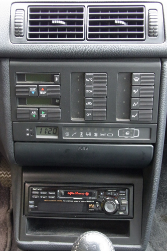| ご多分に漏れず、オーディオのヘッドユニット周りのパネルがぺとべとになって手がつけられなくなってきました。埃も吸着しあまりにも見苦しくなってきたので対策を施すことに。 表面に施されたマット塗装が分解され変質しこのようなべたべた状態になってしまうとのことで、この時期のイタリア車にありがちな症状のようです。 対策は、べたべたに変質した塗装を剥がし(拭き取り)再塗装するしか手立てはないようです。 ということで先ずは、問題のパネルを外すところから。 ![]() 例に従い、(←このときはまだ綺麗だったようです)オーディオユニットを外します。気軽に脱着できることは、この時代の欧州車の良いところですね。 ![]() オーディオユニットが外れたら、オーディオを固定していたケーシングを抜きます。極めて原始的に、爪を折るということでしか止まっていないので、上下、数箇所の爪を起こします。 ![]() 下は、この四箇所の爪で止まっていたので、これをドライバーの先で起こしてやりました。 ![]() 上は、この二箇所。なんとなくイタリアンジョブの臭いプンプンなので、個体によって倒しこんである爪の箇所が違うかもしれませんね。 ![]() 爪を起こしてやれば、それだけでこのケースは前に引き出すことができます。実際は上の爪を起こさず、下の爪を起こしてケースを歪ませながら取り出す方法で取り出すこともできました。 ![]() 抜き出したケースはこんな感じ。TOP・BOTTOMと刻印があるので、再組み付け時も間違うことはないでしょう。 ![]() 金属のケースを外すと、問題のパネルを止めているネジが現れます。上の画像の矢印の2箇所です。 ![]() 下から覗くとこんな感じ。 更に接近して… ![]() ![]() 場所的に長いドライバーが入らないので、このようなドライバーを使いました。何のとき買ったのか覚えていませんが、何かと重宝します。因みにネジというよりタップスクリューです。思いっきり締まっていたら、力も入れにくいしどうしようと思いましたが、イタリア人も力が入にくいと見えてゆるゆるでした。いいのか? ネジが外れればパネルも取り出せます。 ![]() 改めて触ってみると、べたべたで、触った手が真っ黒になるぐらい。ここまで酷いことになっているとは思いませんでした。 先ずは、悪くなった塗装を剥がします。GSIクレオス(旧グンゼ産業)のMr.カラーうすめ液を使いました。 ![]() 途中ドブ漬けにしたくなるぐらい、もろもろと剥がれてきましたが、結局30mlぐらい使いました。正面のパネルを中心に、小物入れになっているところの外装もややべとつきがあったので、表面となっている部分全体をふき取ってみました。元の塗装が本体を侵しているような箇所もありましたが、あまり細かいことは気にせず触ってもべとつかないことを目標に取り去りました。 旧塗装が剥離できたら、再塗装。べたつきふき取り後乾燥させたあと、念のため中性洗剤で塗装する面を洗っておきました。 小物入れの中は、起毛処理が施してあってここはべたつきの問題もないので、塗料が付かないようにマスキング処理をしました。 ![]() 使った塗料は、お気軽にプラスティック模型用のラッカー系塗料。 ![]() 旧グンゼの定番、33番つや消し黒が、念頭にありましたが行った店で品切れだったので、タミヤカラーのTS-29「セミグロス ブラック」半つや消し。「半」ってなんだよ?と思いましたがまあいいやと思ってこれにしました。 ![]() 何度か重ね塗りをして… ![]() こんな感じに仕上がりました。 色と艶の確認で車内に持ち込んでみると… ![]() うーん…似て非なるもの^^; 仮組み付け。 ![]() まあ…いいか。ということにして、更にじっくり乾燥させました。 乾燥を十分にしたら組み付け。この二本のネジで止めます。 ![]() TOPと書いてある方を上にして、金属のケースを取り付け。起こした爪を再度倒して固定します。 ![]() 背面配線を戻してデッキユニットの取り付け。 ![]() 音が出ることを確認してから取り付けたほうが良いですね。 プラスティックの枠を取り付けて完成。 ![]() こんな感じ。 ![]() まあお手軽工作としてはこれで十分かな。 これが… ![]() こうなった! ![]() ![]() と、思えば、費用対効果(600円ぐらい?)もまあまあ高かったと言ってよいでしょうか? プラモデル用の塗料、耐久性の方はいかほどなものでしょう? べたべた化した旧塗装を剥離した後に、表面を整えておけばもっと綺麗な仕上がりになったかもしれません。色は、少し青みがかった限りなく黒に近いグレーが正解だったかも。 と、こんなごく簡単な作業をこれでもか!というぐらい引っ張ったレポートでした。 |