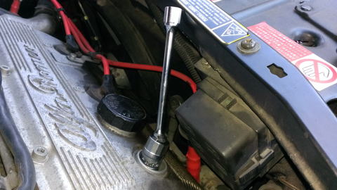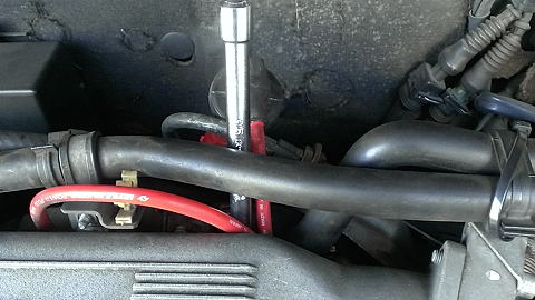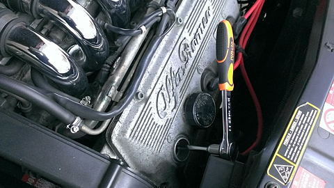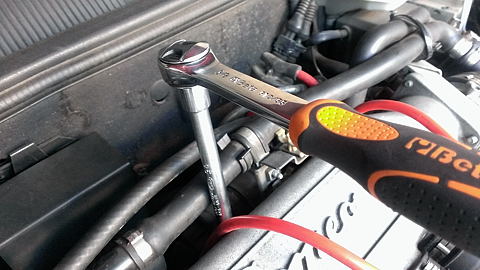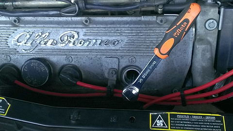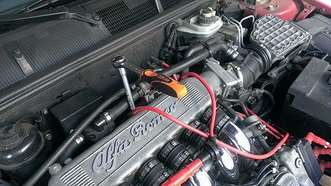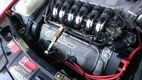 | エンジンの吹けが悪くなるというか、吹けなくなるという現象が起こったのでしばらく行きつけの整備工場に預けていました。 しかしエンジンが吹けなくなるという現象がでなかったため原因がわからないとのこと。 O2の値・エアフロの電位等も走行しながらモニターしていただいたようですが異常値は示さなかったということでした。 というわけで、そのまま乗るか消耗品であるO2センサー、イグニッションコイル、プラグコードを交換するかという提案がありました。でも、どれも予兆なく止まる原因にはならなさそうだったので様子を見ることにしました。 こちらからのお願いでいきなり止まる原因になり得るクランクアングルセンサーの交換と、今回の件とは別に気になっていたサーモスタットの交換をお願いしていました。クランクアングルセンサーも現状おかしくはないということでしたが、確かに消耗品だということで賛成してもらえました。 ちなみにサーモスタットは見事に開きっぱなしだったようです。 今回その状態で一旦引き取り。暫く問題なく走っていましたが、ところがやはり思い出したように症状が出る…。状況を冷静に見てみると、一旦アクセルを離したときにインジェクションランプがついて次に踏み込んだときに吹けなく なり更に踏み込んだときに回り始めるという感じです。…が、前回持ち込む直前に比べて現象は頻繁に起こらなくまた少し踏み込めばすぐに復旧しその後も症状は出なくなるという何とも状況、症状の特定が難し状態です。 もう少し症状が固定するまで様子見を続けることにすると同時に、点火系で自分で行える範囲のメンテということでプラグを交換をすることにしました。 前回交換したのはちょうど3年前の12月。距離にして17,000km〜18,000km走っています。 交換時期と言えば、そろそろ交換時期にきているともいえるでしょう。 プラグ交換の手順は3年前(こちらもご参照ください)と大きく変わりませんが、画像も撮ったので同じような手順のものを備忘録代りに再掲載。プラグは前回と同じくNGKのBPR6E。ちなみに指定は7番ですので指定どおりにしたい場合はお間違えなく。 まず気が重いリアバンクから手をつけました。 1番はブローバイをはずしてアクセス。プラグレンチも無事入れられました。 ![]() 次に3番。今回は1番のプラグコード以外何も外さず知恵の輪を解くようにプラグコードを抜くことができプラグレンチもプラグホールに到達できました。 ![]() ![]() 最も気が重い2番は前回同様、アイドリングコントロールバルブの固定ネジを若干緩めて自由度を持たせてプラグコードの引き抜き。 でもアイドリングコントロールバルブの位置を調整しなくても抜けたような気も… タペット交換・調整をお願いしたときにこのあたりの配管、配線の位置関係が若干変わっているような気がします。 ![]() ![]() リアバンク完了。 ![]() 大がかりなことをしなくても交換できそうでできない、できなさそうでできる… 微妙な機器・配管の配置の中にあるリアバンクのプラグコード&ホール。 リアに比べるとフロントバンクの6・5・4番は気楽です。 まずは6番 ![]() 順に5番 ![]() そして4番。あれ?首ふりのエクステンションじゃないとエクステンションの端がフロントメンバーに あたって入れられない…。前回そんなことで気を使った気がしないのですが。 ![]() …と、思ったら4番は前回、車載工具で抜いてましたね。 いずれにせよリアに比べればこんなことぐらい^^; ![]() これですべてのプラグの交換を無事終了。 ![]() スマホで写真を撮り撮りなんだかんだで1時間半弱かかりました…。 しかし、スマホなどというもので作業手順を記録に撮りながらメンテ作業を進めていくなどこの車に乗り始めたころには想像もつかなかったことです。 新旧比較 ![]() ストール対策の何かの役に立ってくれるとよいのですが。 ![]() 3年前に泣きながらやったときと比べればスムースだったかな? こんなに苦労するならついでにイリジウムでもと思うのですが、価格が×6で効いてくるので結構怯んでしまいます^^; 今回も前回同様プラグレンチはKTC製を使い、また念のためにプラグレンチとエクステンションはビニールテープで留めてプラグレンチのホール内の置き去りを予防したのも前回同様です(首ふりが必要だった4番は留めていません)。しかし今回はレンチの抜き差しはスムースでした。 今回明らかになったことは、4番の交換を汎用工具で行う場合には首ふりのエクステンションが必要ということでしょうか。今回は15度の首ふり機能がついたエクステンションで行いました。 さて、気休めのつもりで交換したプラグですが、実は交換後、「吹けなくなる」という不具合は出なくなったようです。偶々か何かが改善されたのか不明ですが、こういうこともあったことを思うとプラグ交換自体も去ることながら結果すべてのプラグコードを抜き差ししたことも何か関係があったのかもしれません。ただ現象が