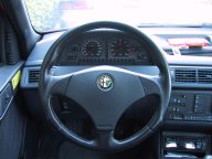 | 日本に正規輸入された155V6の仕様に関しどのようなものが存在したのかについてまとめていきたいと思います。これから中古のV6を購入される方の参考にでもなれば…ってならないですね。単に個人的興味です。 155は96年5月に既に生産を終了していたとのウワサもありましたが真偽のほどは定かではありません。(ちょっと無理がある?) 日本に正規で輸入された155は全てスポルティーバで、これは公式にもそうですし、ウワサでも他が正規で入ってきたというのは聞いたことがありません。(166など正規でマニュアルが入ってきたとかカタログにない妙な例があるようですが) 日本正規輸入バージョンとしては、95年のマイナーチェンジに伴うV6日本正規輸入第一弾(95年輸入分)、それに続く第二弾(96年輸入分?)、そしてリミテッドバージョン(96年9月発売250台)、最後のアリヴェデルチ(98年1月発売なので97年輸入?250台)という4仕様に分けてみました。大きく分けて4つしかないと思った根拠は以下の通りですが、思いもよらない仕様の正規輸入車も存在するかもしれません。イタ車ですから^^; 手元の本より輸入台数を抜粋します。 1995年…236台 1996年…707台 1997年…349台 1998年…90台(1〜4月) 一つのロットが何台なのか見当もつきませんが、LV・アリヴェデルチともに250台なのでそのくらいが最小単位だと思われます。 95〜97まで、ざっと1300台。そのうち250台がリミテッド・バージョン(97年までに全部はけたとも思えませんが)として通常バージョンが1000台強。ということで、95年輸入分が500強、96年輸入分が500台強といった仮定でいかがでしょう?(TSのアリヴェデルチが500台ですので、500台というのが通常のひとつのロットかなと。) いまのところ96年のリミテッドバージョンが輸入開始された以降は、通常バージョンの新規輸入はなかったのではないかなと思ってますが、97年にTSがスポルティーバになったときと同時にV6が入っていたかどうかが気になります。私の155は97年登録ですが、おそらく96 のリミテッドバージョンより前に輸入されたものではないかと思ってます。 ただし、一般バージョンは数の多さから更に細分化されるかもしれませんね。特に最初期型(パワーシート付と思われる仕様)が500台もあるとは個人的には思えません(^^;) と、思ってたらあっという間に反例をみつけましたので追加です。 初期の通常バージョンにパワーシートではないものを見つけました(雑誌の写真で)。やはりパワーシートは極初期のものに限られるかもしれません。 その後頂いた情報によると、やはり97年にTSがスポルティーバになったタイミングと同時と思われる時期にTSスポルティーバに順じた一般仕様のものが入ってきているようです。これはその後のアリヴェデルチの特別仕様の部分がない仕様のようです。 さて仕様が違う違うと騒いでますが、どこが違うのか?見聞きした中で以下の部分について差異が認められるようです。気が付いた部分だけですので更に他の部分にもバリエーションはあるかもしれません。 (画像は全て後述96−97年一般仕様(1)のものです。) 1.ホイール これは、全てスピードラインの5本スポーク16インチですが、色に黒メタリック・白(リミテッド・バージョン専用)・ガンメタリックがあるようです。 その後、「黒」もあるという情報も、いただきました。(因みにその車輛のボディーカラーは黒だそうです。ボディーカラーとの相関があるか否かは不明。) というわけで黒・黒メタリック・白(リミテッド・バージョン専用)・ガンメタリックのバリエーションのようですね。 ![]() ▲黒メタリック仕様 2.ステアリング紋章 ステアリング中央のアルファの紋章です。初期のものは黒ですが、途中からカラーになているようです。 ![]() ▲カラー紋章仕様 3.エンジンロゴ エンジンに書かれた、Alfa Romeoのロゴです。カタログなどで赤いものを見ましたが、実際未塗装のものしか確認できていなかったので、赤塗装は撮影のための特別なもので一般には実在しないと思ってました。ところが、アリヴェデルチにお乗りの方に頂いたエンジンルームの写真を見ると赤色塗装に!ご自分で塗装されたのかと思いお尋ねしたところ、最初からそういう仕様だったというお話でした。 アリヴェデルチは赤塗装なのかと思ったらそういうわけでもないらしいです…。雑誌に未塗装アリヴェデルチが載ってました。 4.ハザードスイッチ ステアリングコラム上のハザードスイッチです。形状は同じですが、黒地に赤い△マークのものと赤地に白い△マークのものがあるようです。 前者が前期で、後者が後期のようです。しかし、96年輸入分あたりは、入り混じっているようですね。しかも車台番号が大きい方が赤白とは限らない…。 ![]() ▲黒地に赤△仕様 5.サイドウィンカー フェンダー部につくサイドウィンカー。比較的新しいカタログの写真に丸型のものが載っていますが正規輸入では存在しないようです。並行輸入車にはあるようですが。正規純正よりこっ