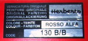 | アルファ・ロメオの赤について…というと範囲があまりに広すぎるので155V6に限定したお話です。 155V6の仕様について情報を頂いた方から、カラープレート(トランクリッドにとりつけられています)の比較をすると面白いというお話がありました。 早速、私の155のプレートを確認すると以下の通りでした。  最上段の「Herberts」は塗料メーカーです。 次の「ROSSO ALFA」は色の名称でしょう。 そして「130」はカラーコードのようですが、これに続く「B/B」は不明です。 情報を頂いた方のものと照合してみますと、違いがありました。因みにその方と私の155の車台番号は極めて近いのですが。 メーカーが「PPG」というところが違っていました。この他、ROSSO ALFA・130・B/Bの記述は同じですがB/BはROSSO ALFAの後に続いているそうです。他に謎の(^^;)イタリア語が…。 「PPG」はガラス会社から発展したかなり大きいコングロマリットのようで、自動車用塗料メーカーとしても大手のようです。「Herberts」もドイツを起源とする大手の塗料メーカーですが今は米デュポン社傘下のようです。現在は「STANDOX」というブランド名を使っているようです。 さて注目すべきは同じ155V6しかも殆ど同じ頃生産したと思われる2台でも、塗料メーカーが違うというところですね。いくら同じメーカー(アルファ=フィアット)が発注した同じROSSO ALFAでも塗料メーカーが違うとなると微妙に色が違っていてもおかしくないかもしれない、という気になります。 実際、同じ赤い155でも違う色が存在している気がしています。赤には違いないのですが強いて言えば朱色系と紅系があるような気がします。一説によると経年変化によりより濃い紅系の色になるという話もありますが…。 私の155はどちらかというと派手な赤、朱色系です(今でも)。私の155より新しい、最後のアリヴェデルチに濃い紅系の赤を良く見る気がしますので、一概に経年変化とも言いきれないかなと感じています。 そこで、今回「塗料メーカー違い」ということが実際あることがわかり、これが色の違いの要因に成り得るだろうと思っています。まだまだリサーチ不足ですが。 …ところが、PPGにお乗りの方から、「どちらかというと朱色系」という情報を頂き、またその方が調査してくださった別の155は「Herbertsで紅系」という情報も頂きました。(なお同じHerbertsの130でもプレートの表記の仕方が私のものとは違うそうです。)ちなみに紅系のその155はアリヴェデルチだったそうです。 こう考えると、96年あたりだけ塗料メーカーによらず朱色系なのでしょうか?75や155のマイチェン前と155最終アリヴェデルチは濃い「紅系」の赤をしている印象があります。それに対し、マイチェン直後や私の155、LVなどは朱色系統の色をしているような気がします。そして情報を頂いている方の97年登録車も朱色系というお話ですので、この近辺だけ色の傾向が違うのでしょうか? STANDOX(≒Herberts?)のページで色を検索してみたところ、同じアルファの130ROSSO ALFAにも何種類(黄色系・青系・ダーク系)かあるようです。いったいどうなっているのでしょうか??? さて130あるいはROSSO ALFAに続くB/Bについては不明です。内装色かなと思いましたが、内装のブラック・グレーには157というコードがついているようなので違うようです。やはり「赤」に関することなのでしょうか? というわけで、まだまだリサーチ不足ですが、塗装についての情報を頂ければ是非!(他力本願^モード^;) |
