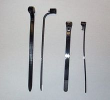 タイバンドにも色、長さ、形といろいろとありまして・・・。一般的なタイバンドは使い捨てなんですが、取り外しができて再利用ができるリリースタイバンドというのも何種類もあるんです。
