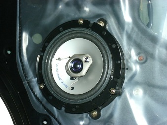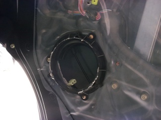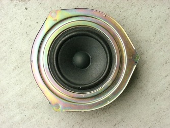 | 純正10cmスピーカーは、こんな風にベゼルで16cmサイズで取り付けられていました。 ラッキー!16cmがそのまま入る。 |