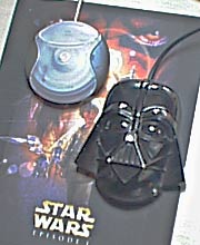 ダースベイダーのマウスです。 Windows用だけど、USB変換ケーブル(下の写真)で無理矢理Macにつないでいます。もちろん、デカくて使いにくいです。 ・・・いいんです。(T_T)