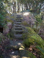 下社までは石段が多い(写真左上は途中の大山寺の石段)。