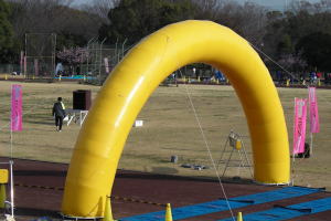 今日は始発電車に乗り早めに会場に到着し、スタートとゴール地点を確認(写真:右上→左下)。