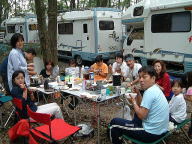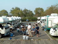 | 00:10 途中コンビニに立ち寄り、霞ヶ浦総合運動公園に到着。 既に10台前後のキャンピングカーが停まっており夜宴中です。 子供達は夢の中、、、家内と夜 宴に参加させてもらいました。 |
