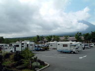 | 17:45 いずみの湯を出発。 この頃、雨が降ってきました。。。 西湖周辺でP泊と思いましたが適所もなく、翌日のことを考 えて道の駅朝霧高原に向かいます。 |