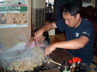 | 空腹に耐えられずにミルクランドで買ったパンを食べてしまったため、意気込んで店に入ったものの注文はいたって小食・・それでも、これで4人前?と思うほどの量でした。 お味の方は「なるほど」って思える旨さがありましたね。 店によって味付けは若干異なるでしょうが、噂の腰のある麺は癖になるかも知れません。(笑) ここで、俄か富士宮焼きそばファンとしてウンチクを・・・ 現在この焼きそばが食べられるお店は市内に170店ほどあるらしい。 かつて富士宮は多くの製糸業が発展。 若い女性が多く、お好み焼き屋が繁盛していた。 お店は玄関先や駄菓子屋の一角だそうで、このお好み焼きと共に独自の焼きそば文化が生まれ育ってきたのです。。。 そんな富士宮焼きそばの一番の特徴は、腰のある麺! 因みに製麺所は市内に3箇所。 そして後にも先にも独特な味付けでしょう! 辛口のウスターソースに絶対欠かせないのがイワシの削り節。 何となく想像してみてください・・旨そうでしょ!?・・食べたことのない方はご賞味あれ! |
