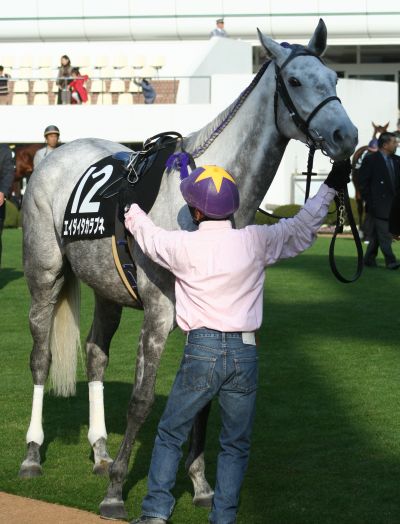この日のパドックは久々の対面だったのですが、もうすぐ5歳のタカラブネ、少し白っぽくなってきたような気もします。