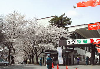 最寄のJRかみのやま温泉駅からタクシーで1200円くらいでした。訪問日はちょうど桜が満開で、競馬場前の道路が桜のトンネルようでした..