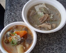 上の写真、手前がうま八のモツ煮。ラー油の効いたみそ味で、ご飯の欲しくなる濃い味付けです。奥がハナマルのホルモンスープ。こっちはあっさりで、ホルモンがごろごろ入ってます。どっちもおいしいところ、あえて軍配を上げれば、ハナマルかな?