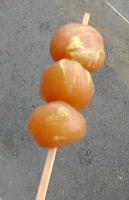 上山の代表選手は玉こんにゃくですね。この辺りの名物ですが、味が沁みてていいですね〜。どの店でも100円で売ってます。からしを付けてどうぞ。
