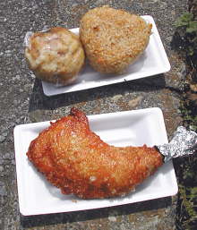 その左は揚げまんというもの。何だろう?と食べてみると、アンコ入りの蒸しパンを揚げたものでした。意外とおいしい。