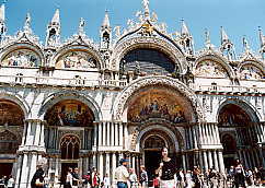 広場の正面に建つサンマルコ寺院には圧倒されました。正面のアーチや内部の天井から床まで、すべてモザイクで装飾されていて素晴らしかったです。