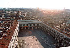 サンマルコ広場には老舗のカフェが3軒あり、夏には外に椅子とテーブルが出されています。夕方になると生バンドの演奏が広場に流れ、とてもロマンチックでした。私達が椅子に座った時‘Over The Rainbow’が流れてきました。