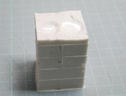 ’84以降のNSの上2気筒のサイレンサーは円筒形になっています。 原型(?)にプラ棒を接着して、ウレタン型を作る準備をします。 |