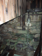 湯口は風呂場の床と同レベル。岩場にへばりついた急な階段を手すり頼りに降りていく。お年寄りには危ないんだけど、どうしてこんな打たせ湯を造ったんだろう? 動力を用いないで、打たせ湯の仕組みを造ろうとするなら、人間様は湧出地より下に潜らなくてはならないことは、ニュートンならずとも分かる自明の理。