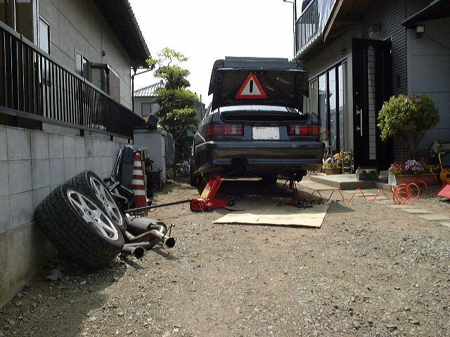 ショックに直接レベオイルを注入し、フロアジャッキをデフに架けエンジンをかけたまま車体を上下させ自重をかけたりしましたが玉砕!