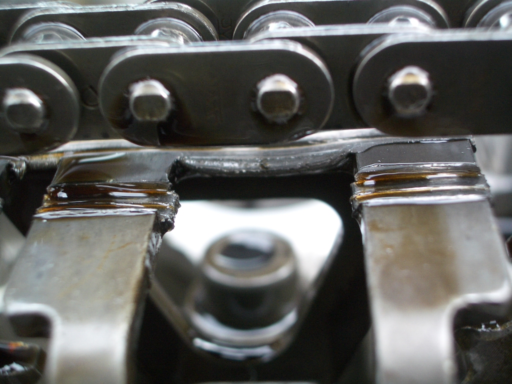 遊んだタイミングチェーンがレールにかなり当たっていたと想像出来ます。