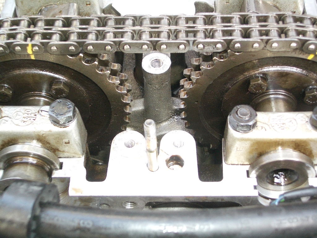 ヘッド上部を良く見ると・・・なんと!カムスプロケ間にある樹脂製のスライディングレールが無いではないですかぁ!