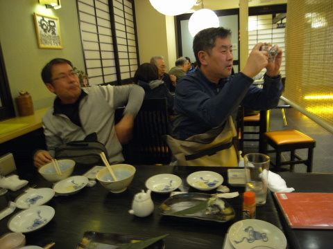 夕食の「ひろめ市場」にて、知らないおじさんと仲良くなるS氏。 |