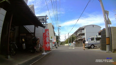 ![]() 途中、信号で前3台とはぐれたんですが、右側の喫茶店にいたとは気が付きませんでした。ドライブレコーターを見たら確かに映ってますねー。でも木陰で分か りにくいのは確か。止まってる方も気が付いてない。 |