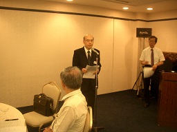 | 総会にて平成21年度会長として承認された小池角次郎会長の挨拶に続き、青山学院大学学長の伊藤定良先生よりご祝辞をいただいた。