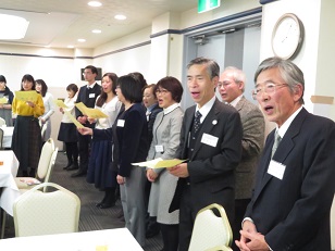 参加者はご来賓の山本与志春院長先生と青山学院校友会会長相川様、教育学科主任早坂教授、教職課程主任樋田教授、河本教授の5名、白亜の会会員34名と4年生3名の計42名であった。今年も、若い教員や、初めての参加者も多く見られ活気に満ちた素晴らしい内容となった。会場内は、例年通り笑顔と喜びに満ち溢れ「カレッジソング」の斉唱で盛会の内に閉会となった。感謝!
