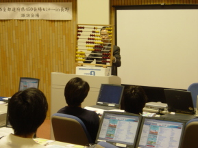 | 酒井式描画指導法で、手を描く(昨年) | 百玉そろばんの実演(昨年) |
